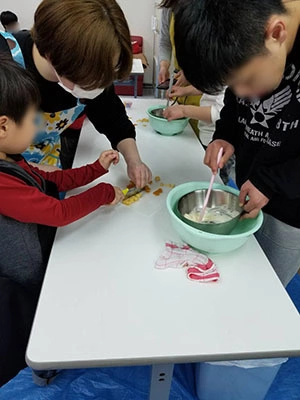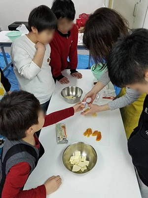 行事情報 料理教室体験!! 2023.09.22 3月14日はファンダンショコラとシリアルチョコを作りました 今日はホワイトデーにちなんでフォンダンショコラとシリアルチョコを作りました。チョコレートを細かく刻み、ゆっくりと湯煎で溶かしたり小麦粉、卵を入れてしっかり混ぜたりと慣れないお菓子作りに挑戦しました。完成したフォンダンショコラはとっても美味しく自然とこぼれる子どもたちの笑顔が素敵でした♡シリアルチョコは家族にプレゼントする為に持ち帰りました。みんな美味しく食べたのかな…。 料理教室体験!! 前の記事